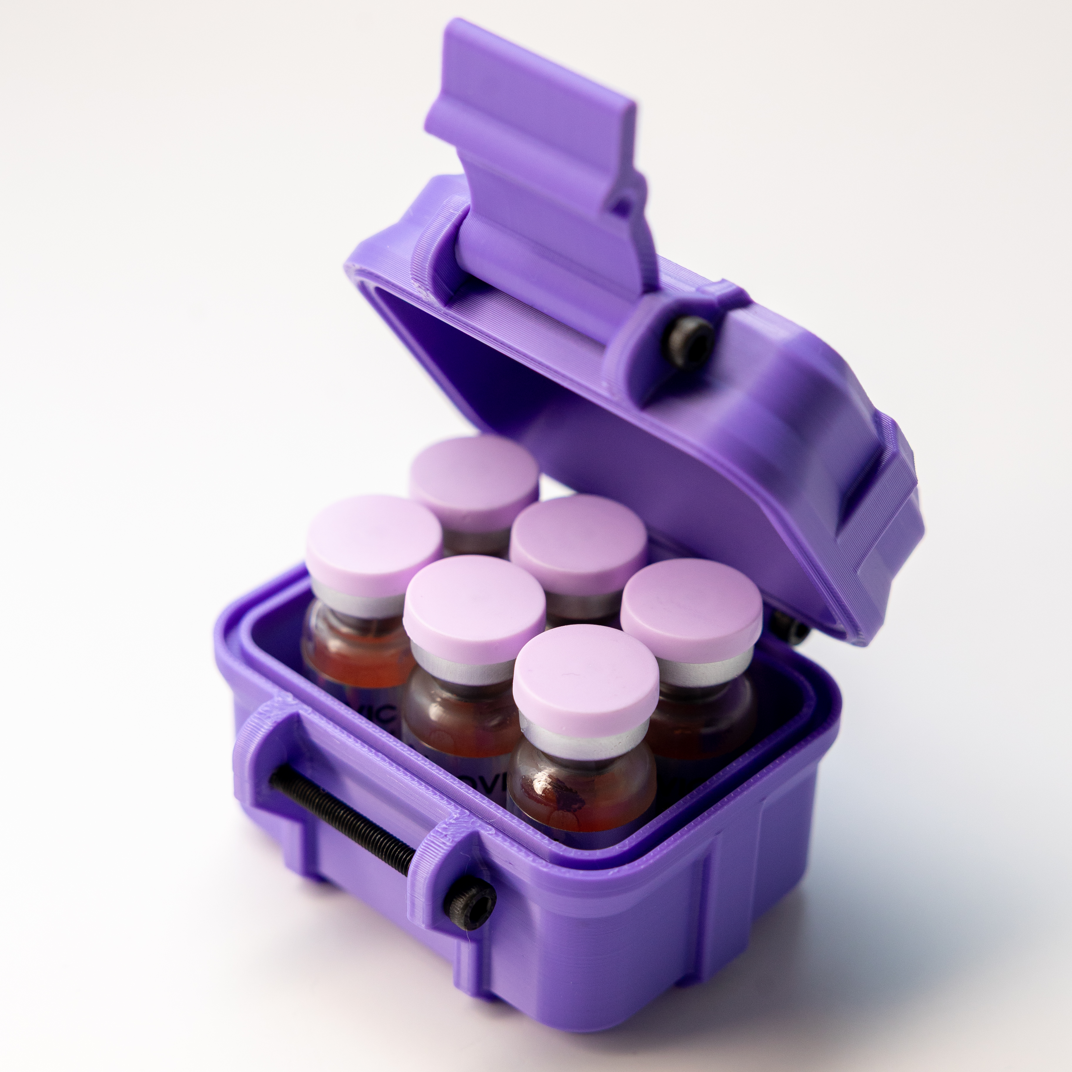The Peptide Storage Box is a compact, protective solution designed to safely store and organize peptide vials. Built with durability and functionality in mind, it offers a secure enclosure that helps protect vials from light exposure, accidental movement, and external damage.